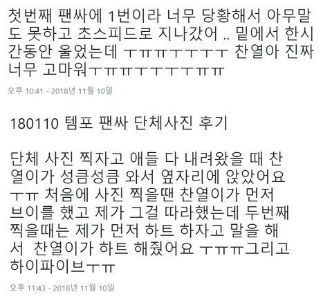 팬싸하는 한 시간 내내 앞에서 울고 있던 팬이 내내 마음에 쓰였는지 마지막에 이런 배려를...