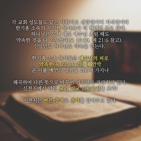 한기총은 교명도 자의적으로 명칭하였으나, 신천지(신천지예수교 증거장막성전)는 성경에 약속한 대로 창설하였고 명칭하였습니다. 무엇이 잘못이란 말인가요?