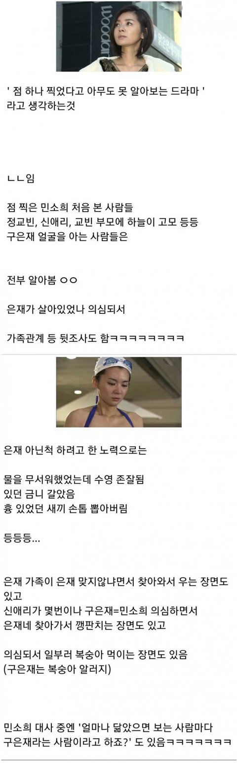 말투도 바꿈 구은재는 웃으면서 네에~^^ 한다면 민소희는 네. 하는 식으로 ㅋㅋ 그리고 민소희가 쌩판 만든신분인줄 아는 사람들 있던데 아님 원래 오리지널 민소희 있는데 구은재가 민소희로 위장한거임