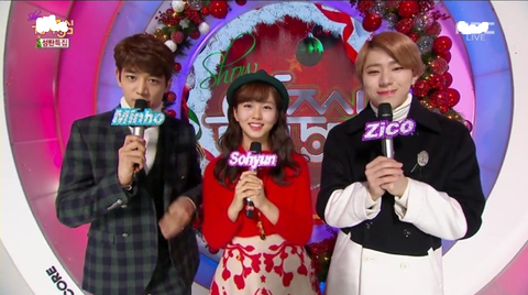 옆자리에는 지코+민호.. 조합 클라스2013~2015년 까지 쇼! 음악중심 MC를 역임함 ㅎㅎ