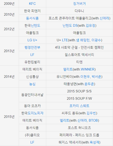 인기스타인 만큼 CF도 꽤나 많이 섭렵해왔음