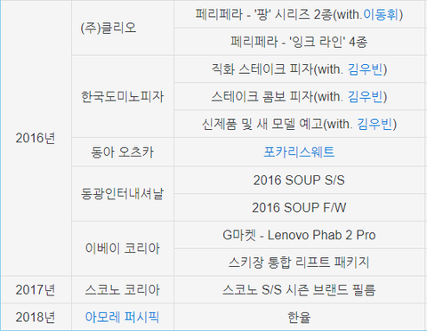 현재까지 총 26개의 광고를 촬영함.
