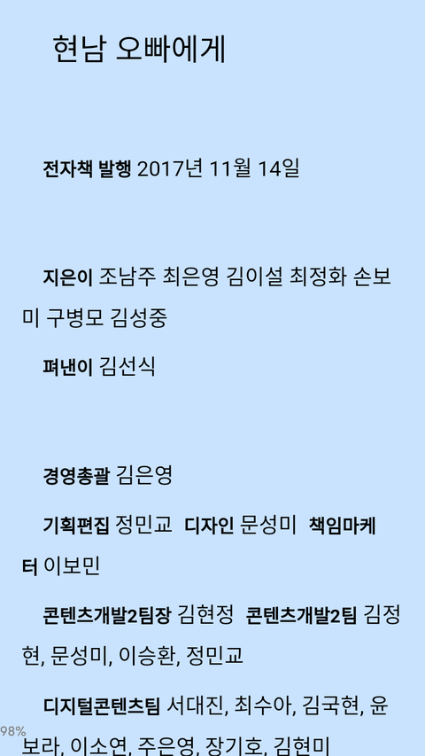 책 발행년도(종이책은 2017년 11월 15일)가 2017년 11월 14일이라서 가능성있을거같아 ㅎㅎ
