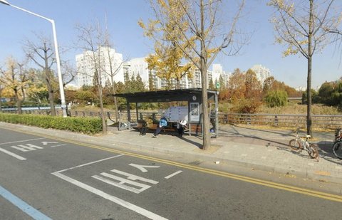 자전거 거치대를 지나는 길목에서