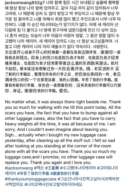 그리고 이거는 잭슨이 작년에 쓴 글이지만ㅎㅎ