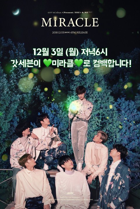 12월 3일 저녁6시 갓세븐 MIRACLE 많이 관심 가져줘❤️