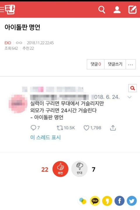 저 글 인스티즈에 똑같이 올라왔었는데 거기서 특정 아이돌 까내리는 글이라고 하는 사람 단 한 명도 없었음 저 글도 니네가 처보면 알겠지만 저격글도 아님