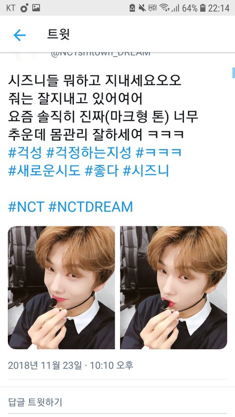 진짜 너무 귀엽다ㅠㅠ 걱정하는지성이라니ㅠㅠ 사진도 너무 귀여워ㅠㅠ 새로운 시도 좋다라니ㅠㅠ진짜 너무 귀여웦ㅍ