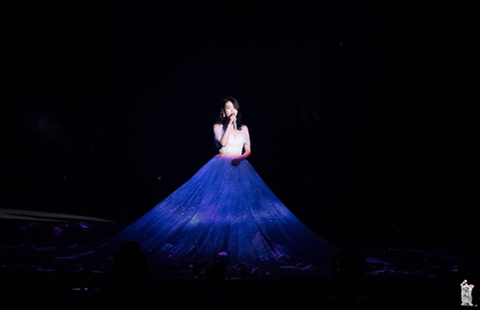 밤편지 부를 때 조명이 드레스로 촥 가면서