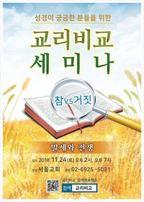 2018년 11월 축제, 핫한 교리비교 세미나에 여러분을 초대합니다.