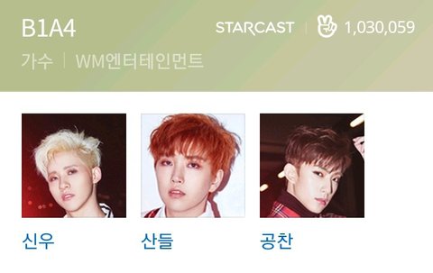 는 B1A4의 신우, 산들, 공찬이 속해있는 WM엔터테인먼트