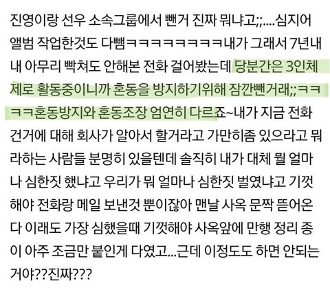 6. 멤버 진영과 바로가 소속사를 나갔을때 팀을 배신하고 자기 할일 찾으러 떠난 이기적인 멤버인것처럼 언플 하기