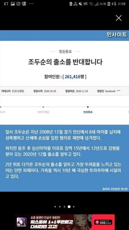 개빡치네 내가 계속 새로고침하면서 링크 올리는데 애새끼가 올리기만하면 이상한거 뜸 ㅅㅂ 네이버애 청원치면 바로 나와 공식사이트 간다음조두순 치면 쫙 나옴 ㄱㄱ