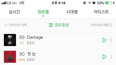 일간 순위 5년전 수록곡이 2주전 수록곡과 비슷