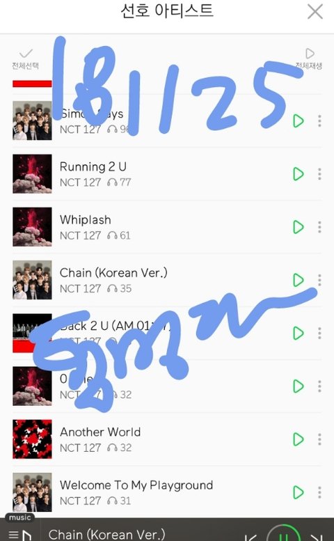 음원발매일부터 스밍한 사이먼세즈 포함 수록곡 누적횟수