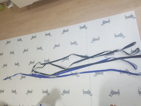 검은색 리드줄이 거의 1m가량? 되고 파란색만 사이즈 대략 1.5미터 정도로 맞는거같더라구요