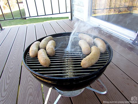 살살 끓는 물에 15분 정도 데쳐서 소시지 내부 온도를 70도 이상으로 가열해야 하지요.