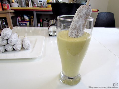 집에서는 반죽의 양이 그닥 많지 않은 관계로 길다란 유리컵에 채워넣고 소시지를 그 안에 푹 담그는 방법을 사용합니다.