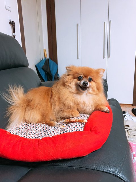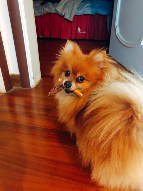 너의 특기는 간식 두개씩 물고다니며 먹지도 않을거면서 깨갱깨갱 거리고 다니는 것