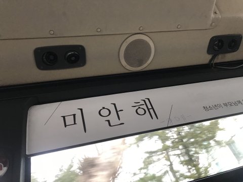 우리지역만 그런건디 모르겠는데 버스에 청소년이 부모님한테 듣고싶은말 몇위 이런거 붙어있담맣야 누가 미안해 에 양다일 써놓음 ㅅㅂㅋㅋㅋㅋㅋㅋㅋ