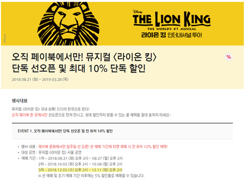라이온킹 3차 선예매 드디어 시작되었어요~
