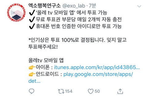 투표로 엑소에게 인기상 안겨주자