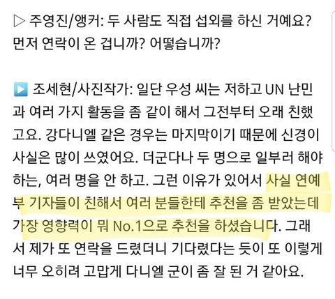 인터뷰중에 나온거 히히 녤뽕찬다❤