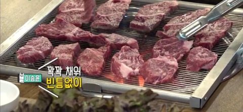 고기 불판에 꽉꽉 채워 굽더니