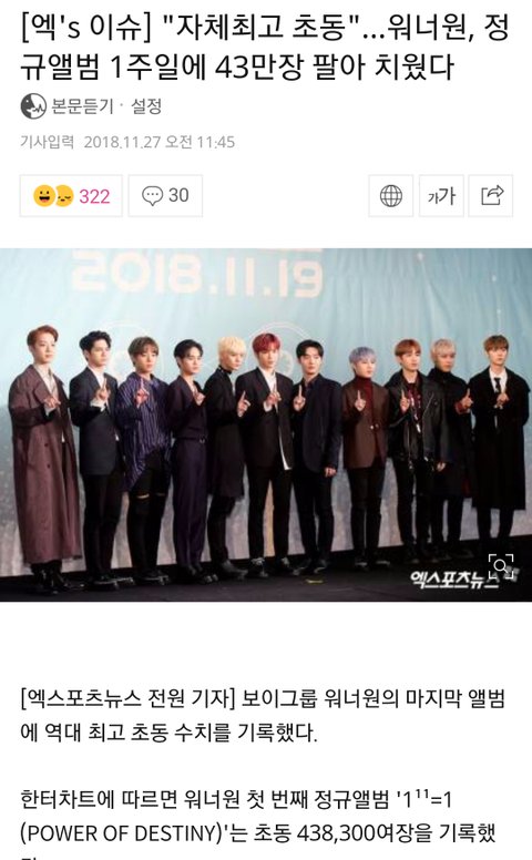일주일만에 43만장 이상!!! 초동 자체 최고 기록!!