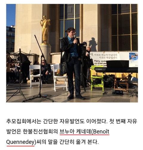 https://www.france24.com/en/20181127-france-senate-official-arrested-spying-north-korea 밑에 사진을 보면 프랑스에서 있었던 세월호 추모 사건을 북한의 간첩이 주도하고 있다.