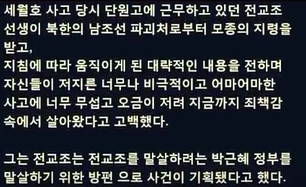 세월호 사건은 북한이 더불어 민주당에 명령해서 저지른 일이다.