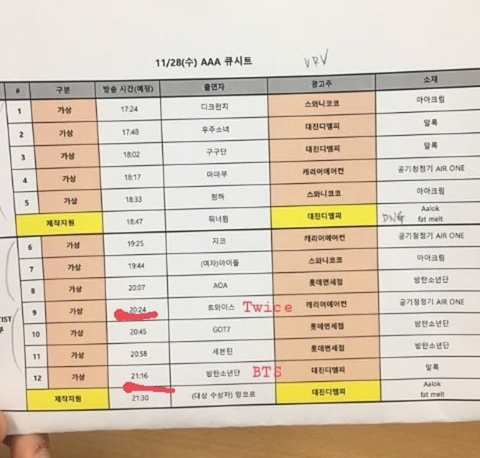 라이브 이런 정보는 없고 걍 순서 이런거임 방탄 대상 확정