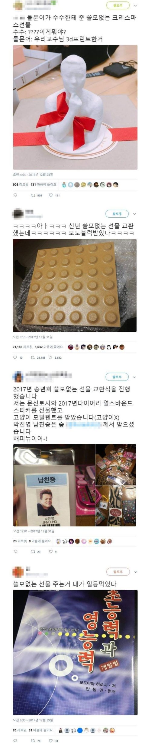 요즘 유행한다는 쓸모없는 선물 주고받기
