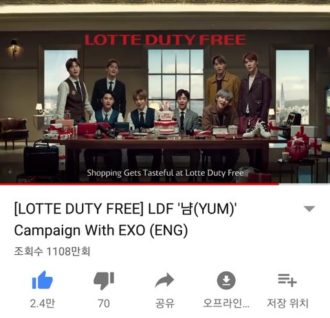 애들 롯뒈면세점 광고 1108만뷰 와