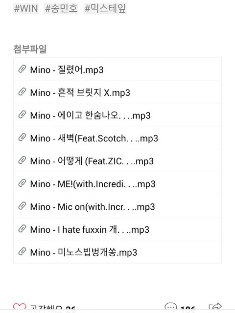 미노 믹스테잎 사진에 있는 곡들 말고는 더 없나여