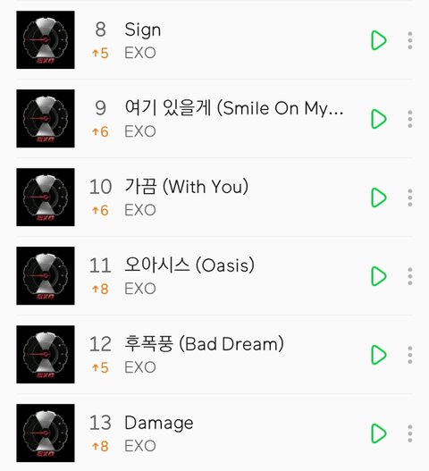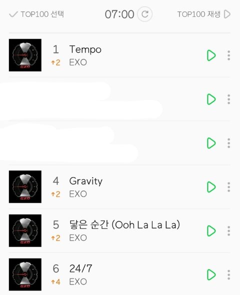 오오 7시차트 템포 1위