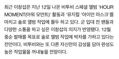 군대가기전 앨범이라는데 좋은곡나와서 창섭이도 만족하고 팬들도 귀호강했으면 좋겠네 창섭아 응원해