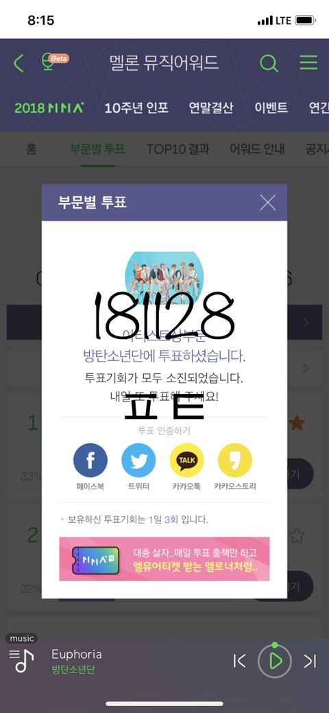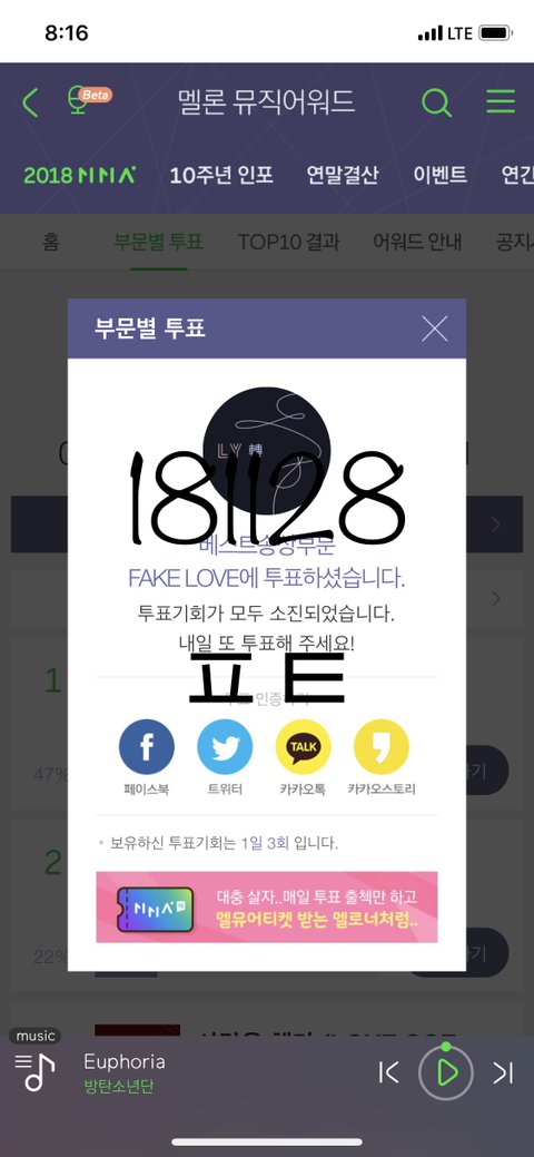 오늘 시상식 있으니 해야할 투표들 미리미리 하자