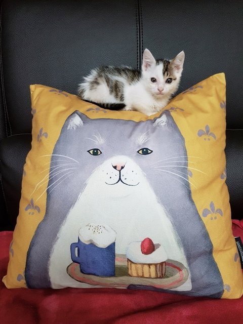 고양이 쿠션위에 앉아 식빵굽기 ㅋㅋ