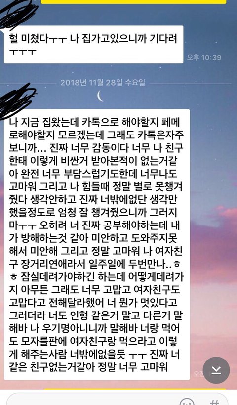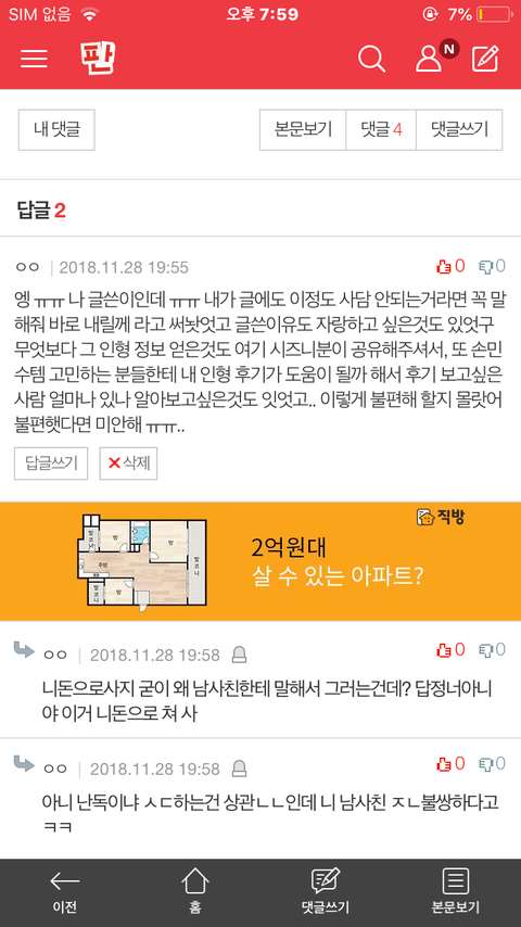 내 저격글?올린 쓰니야 너 댓글만 보면 내가 무슨 (이런단어 극혐하지만)김치녀 같기 보이네...내가 아 팬톡에 이런글 괜히 썻나 싶고 그냥 시티 얘기 하는 곳에서 이런 싸움 끝내고 싶어서 좋게 사과햇는데도 내돈으로 쳐 사라니 ,ㅈㄴ난독이라니, 내친구 불쌍하다니 그런 소리 하길래 글써봐
