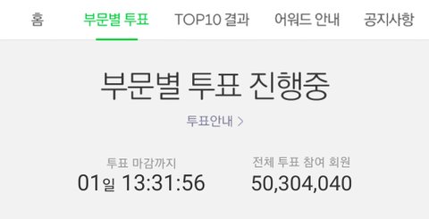인기상은 어제 이시간보다 약 2천표 빠진 상태임)