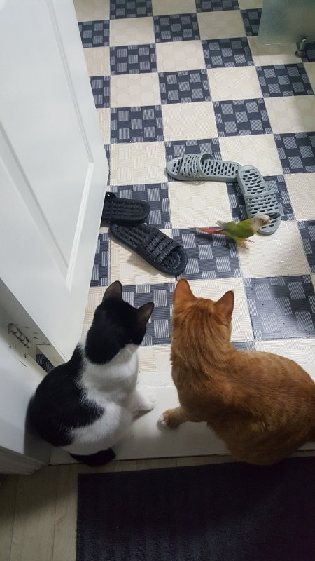 고양이들이 쪼꼬를 공격하고 다치게하면 어쩌나 했었죠.
