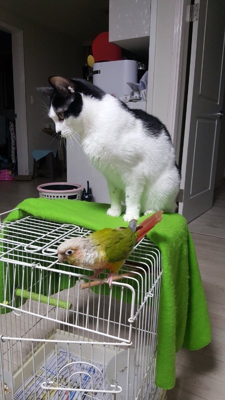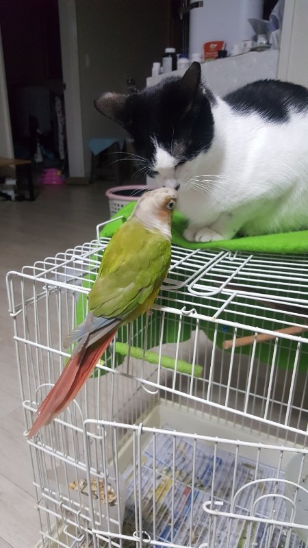 쪼꼬는 숫컷 파인애플 코뉴어 종으로 앵무새이긴 하지만 말은 못해요 ㅎㅎ