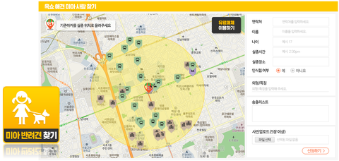 실종 정보를 홍보하는 서비스 '미아 반려견 찾기'라는 서비스가 있습니다.