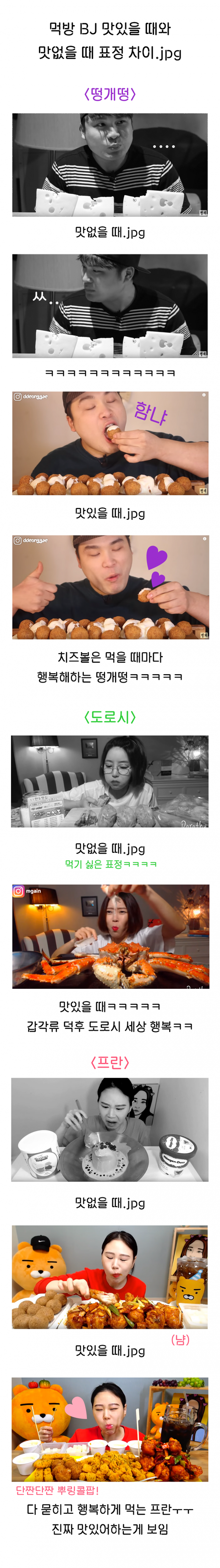 먹방 BJ들 맛있을 때와 맛없을 때 차이