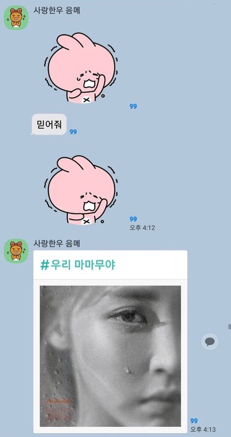 앜ㅋㅌㅌㅋㅋㅋ믿어줘 하고 이모티콘쓴거 졸귀다...