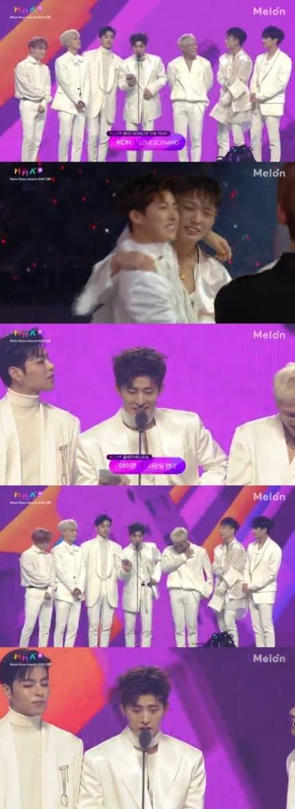 "파도가 치는 아이콘에게 조건 없이 방파제 역할을 해주셔서 다시 한번 고맙고 미안하다는 말씀 전하고 싶다. 저희 아이콘은 작은 찻잔에 바다를 담으려 했다. 그러다 보니까 넘치다 못해 아무것도 남지 못하게 됐다. 그래서 이제 저희는 작은 찻잔에 차 한잔을 우려 담아 대접해 담소를 나눌 수 있는, 그런 그룹이 되려 한다"
