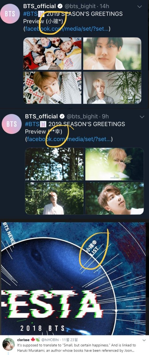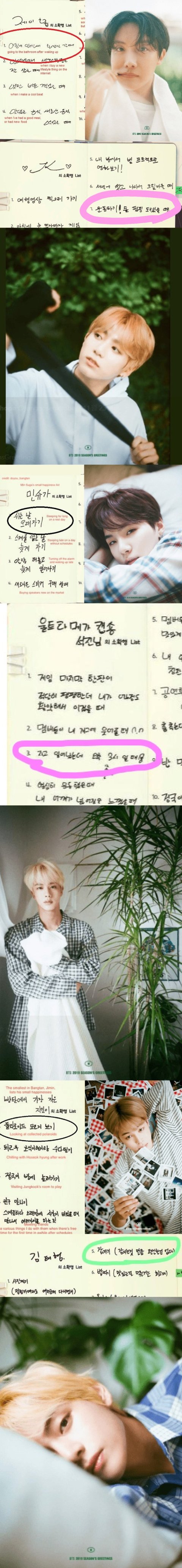 그리고 시즌 그리팅 사진들이 페스타 때 멤버들이 썼던 소확행 리스트들과 겹침.