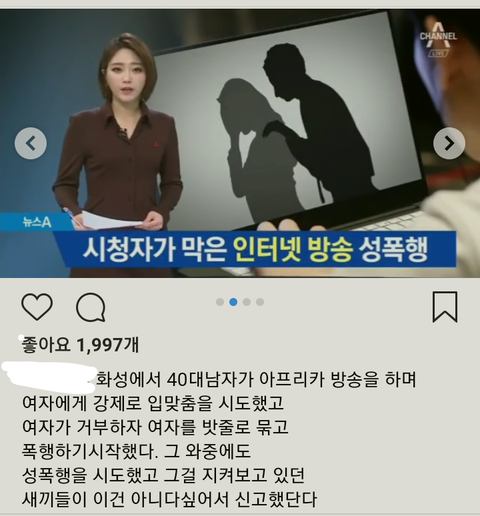 30-40대 남성이라는데 방송보던사람들이 신고해서