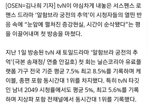 열이 드라마 첫방 시청률 나옴